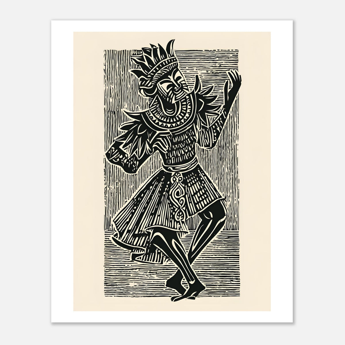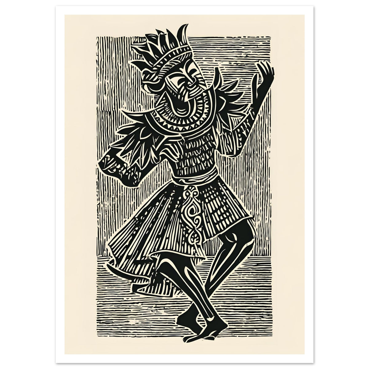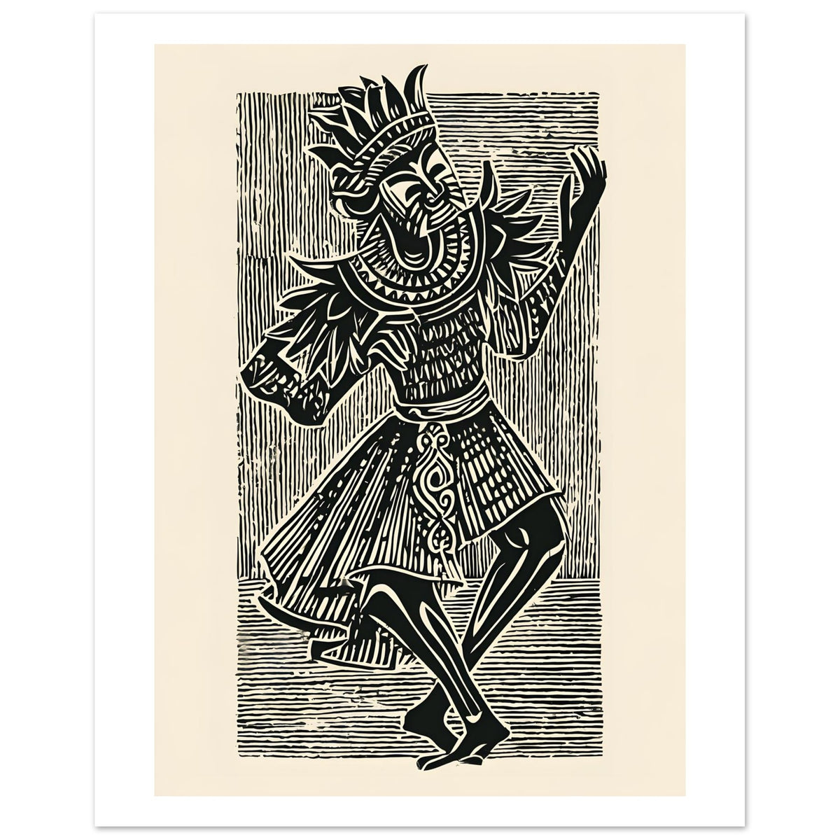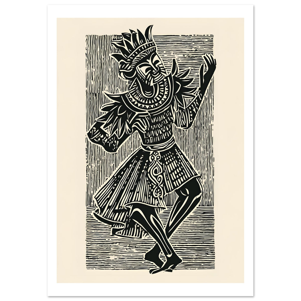 « Danse traditionnelle » — Estampe sur linogravure (Interprète traditionnel) - 13 x 18 cm / 5 x 7 pouces