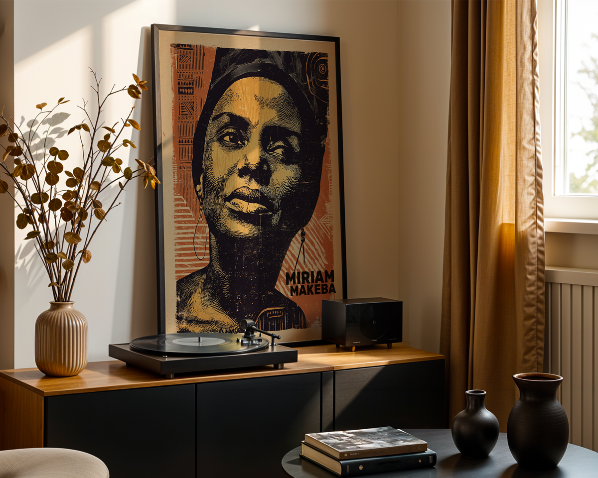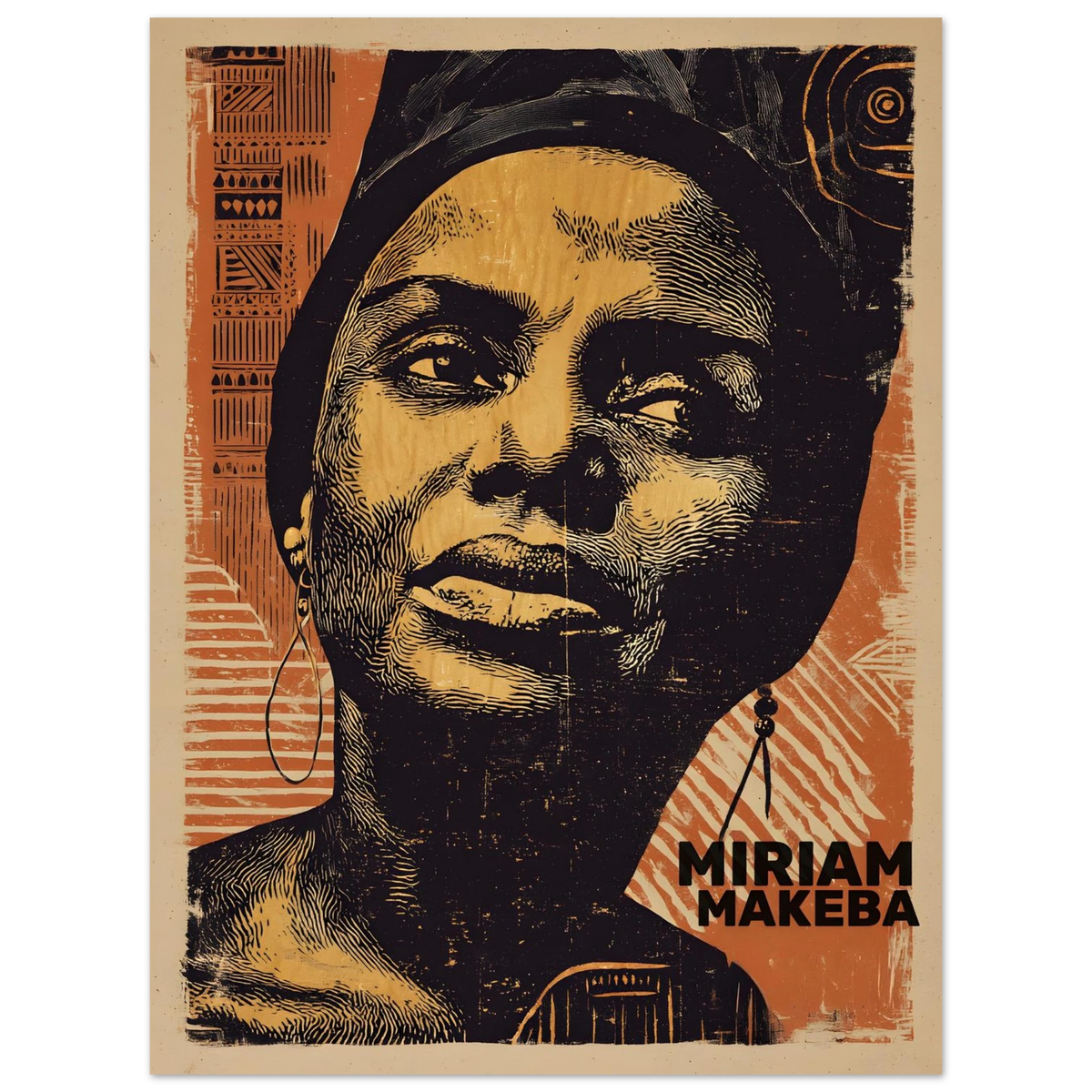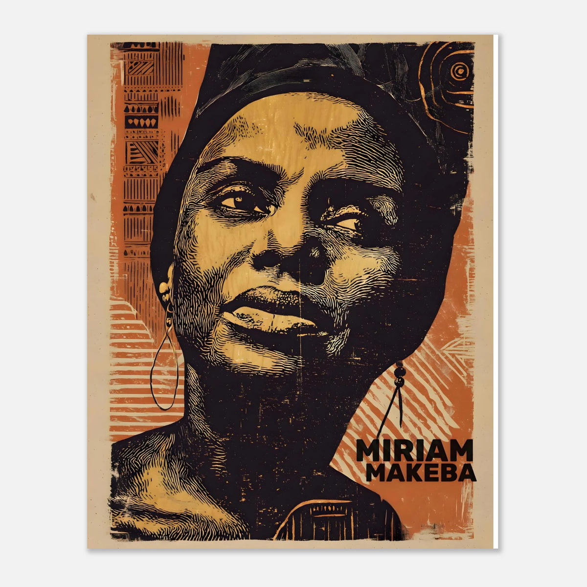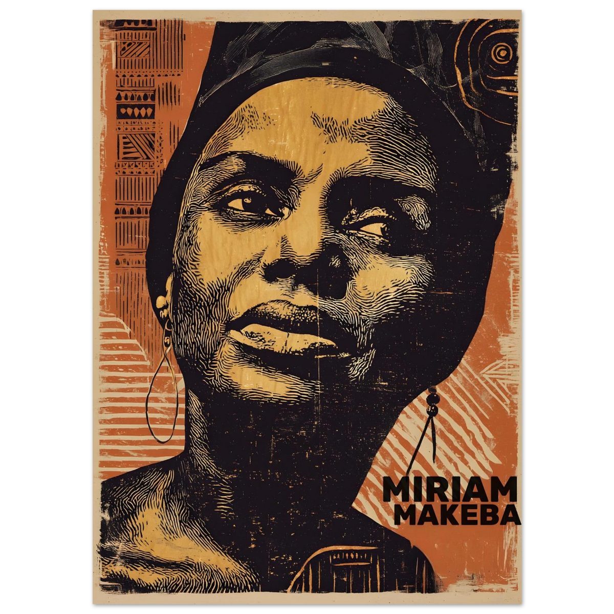 Un portrait magnifiquement réalisé dans le style linogravure, célébrant Miriam Makeba, la légendaire « Mama Africa ». Cette œuvre mêle...